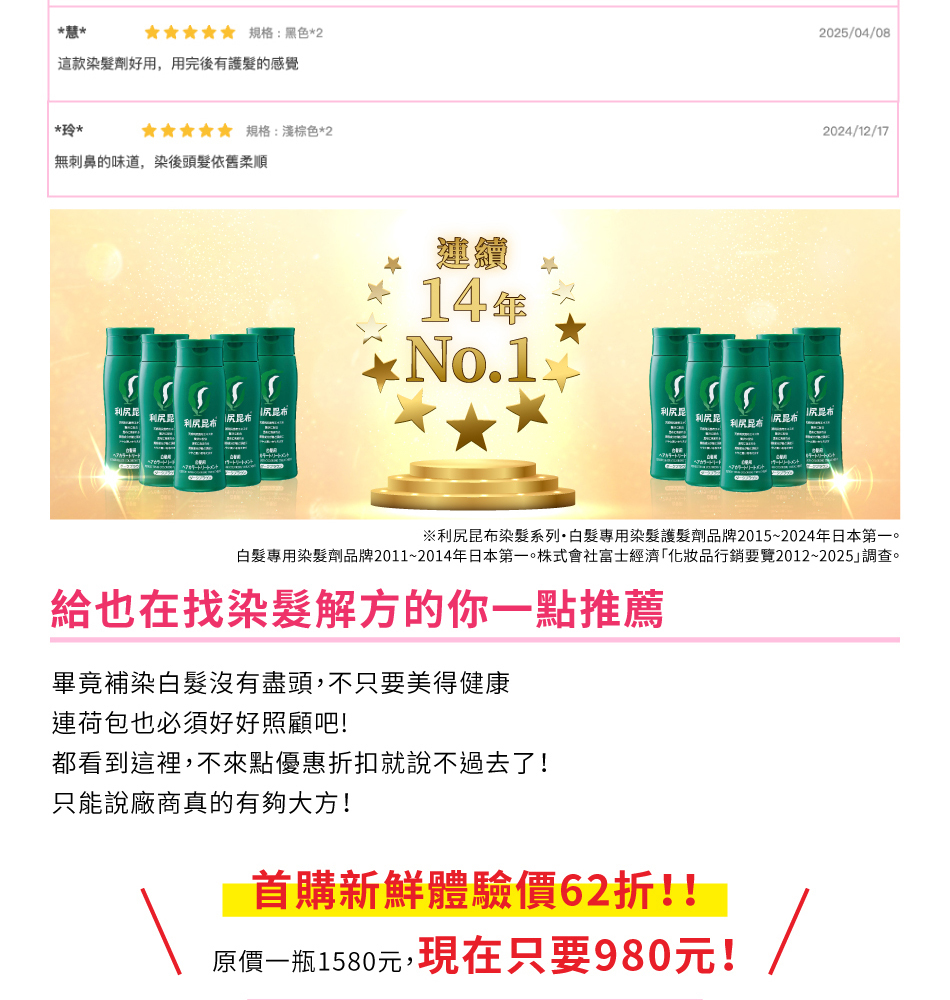 【利尻昆布】白髮用修復染髮劑