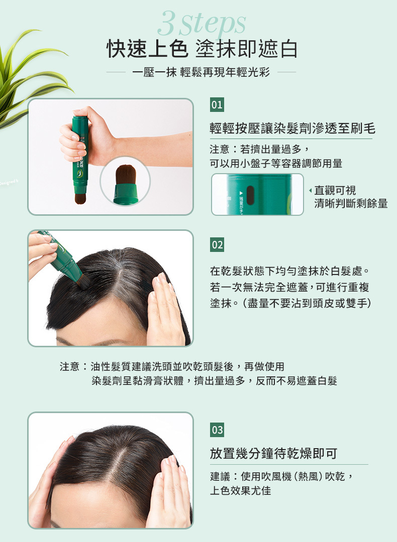 ⚫ 用法簡單 | 一壓一抹 快速遮白髮